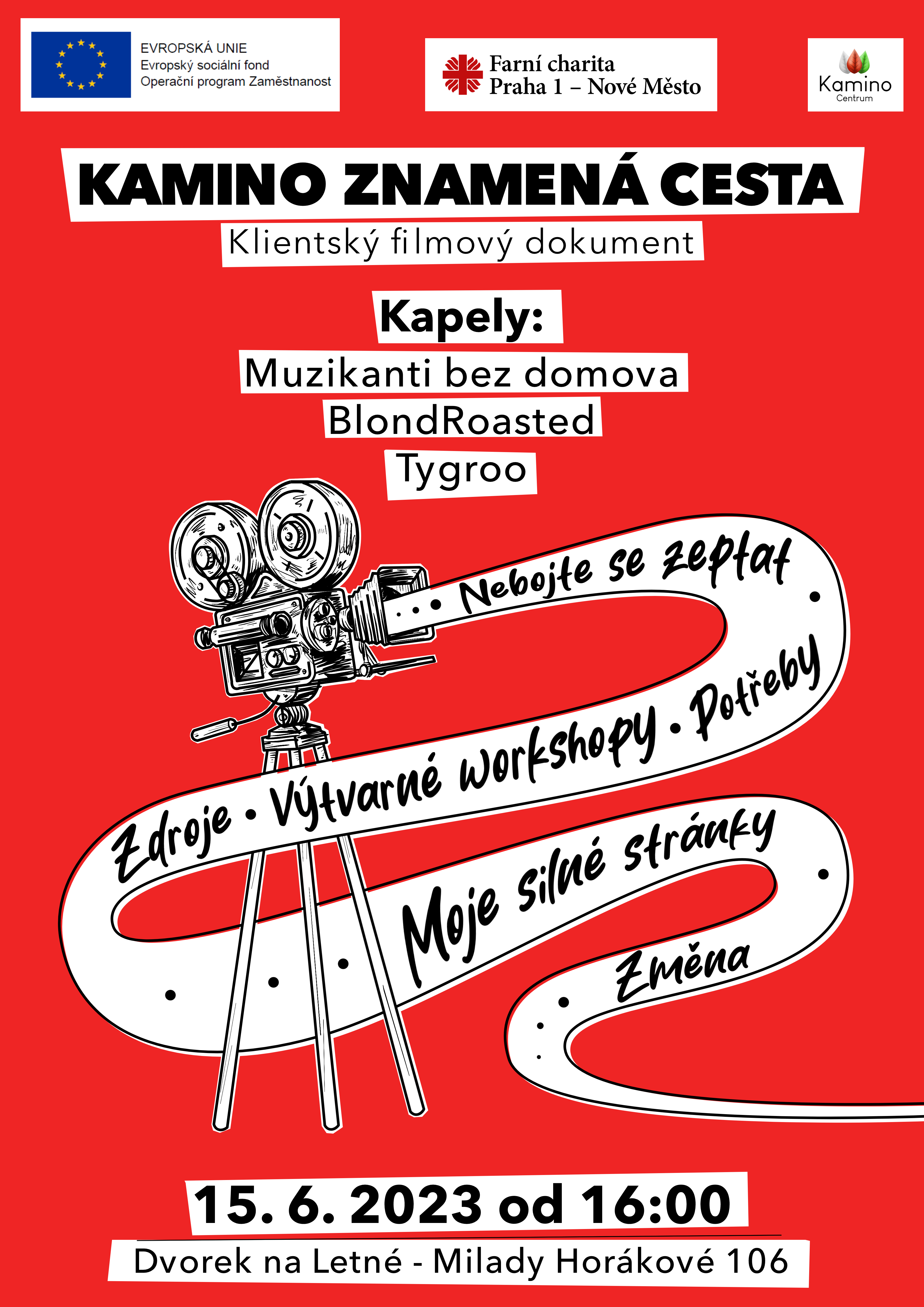 Představení práce klientů (filmový dokument Kamino znamená cesta), workshopy, ukázky práce týmu. Kapely a program přístupný veřejnosti.