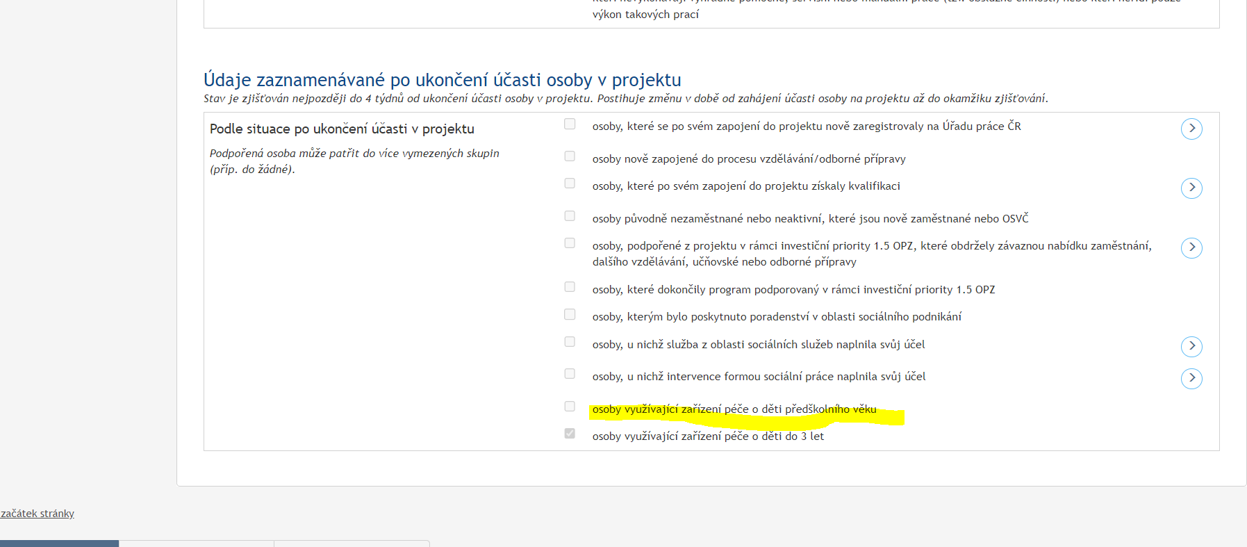 V rámci nápravy potřebujeme upravit údaje u 4 osob v části Charakteristika podpořené osoby - Údaje zaznamenávané po ukončení účasti osoby v projektu. A jednu osobu z projektu vyřadit.