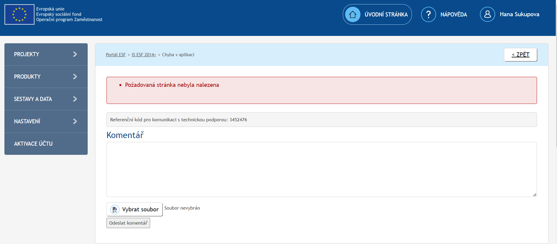 V kontaktu s manažerkou projektu jsme, ale ta doporučuje kontaktovat Technickou podporu.