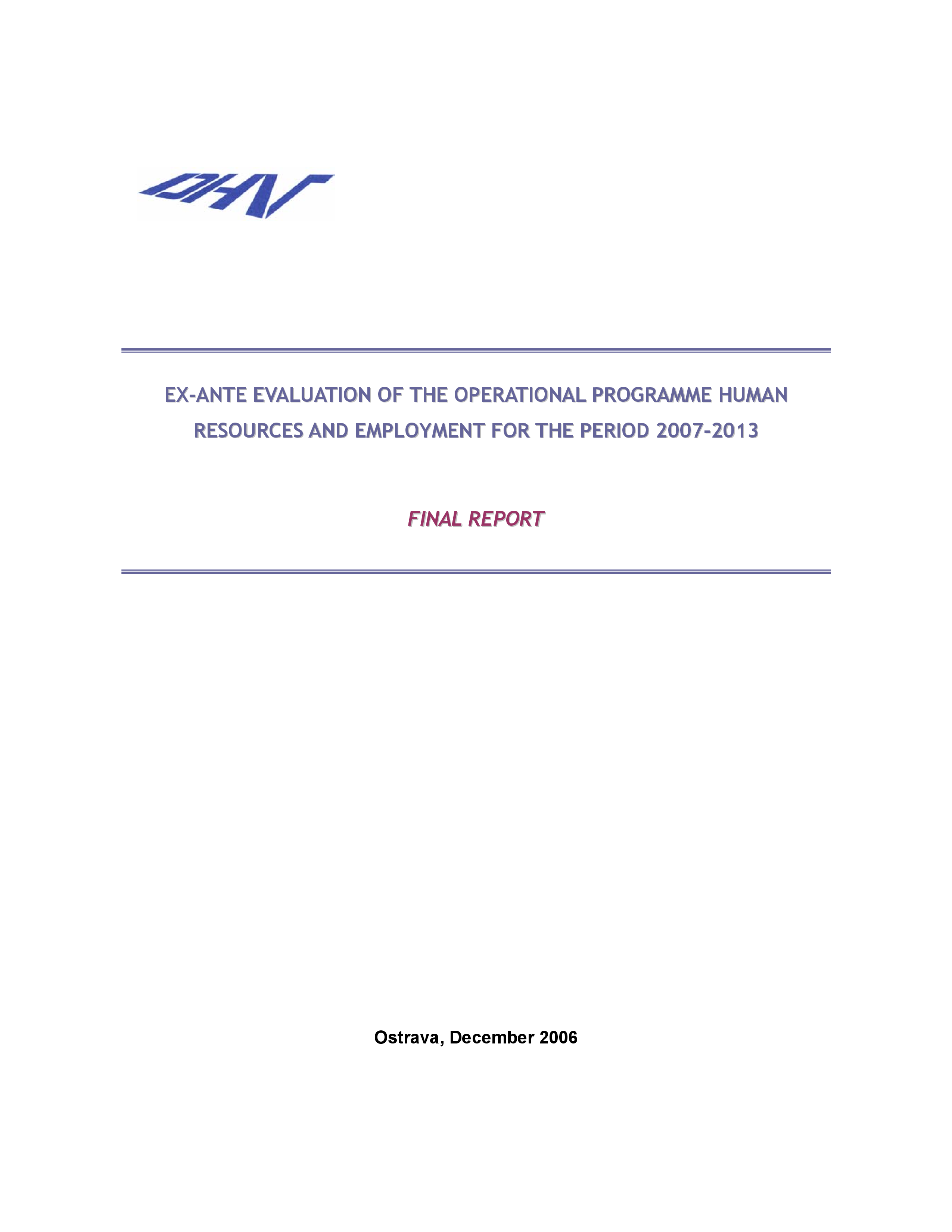 EX-ANTE EVALUATION OF THE OPERATIONAL PROGRAMME HUMAN RESOURCES AND EMPLOYMENT FOR THE PERIOD 2007-2013