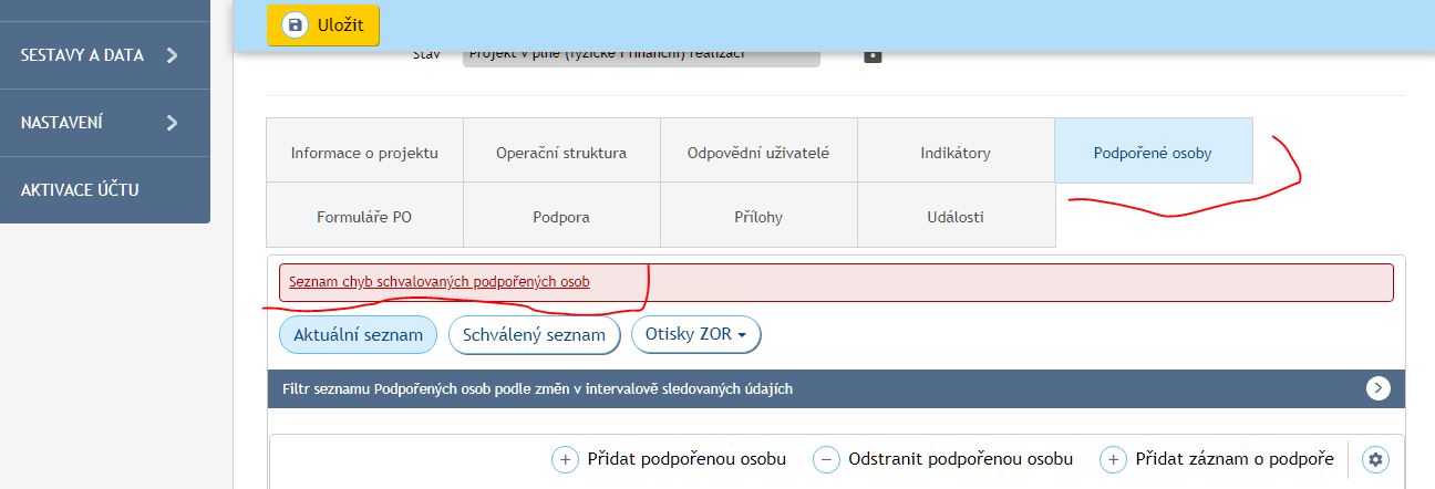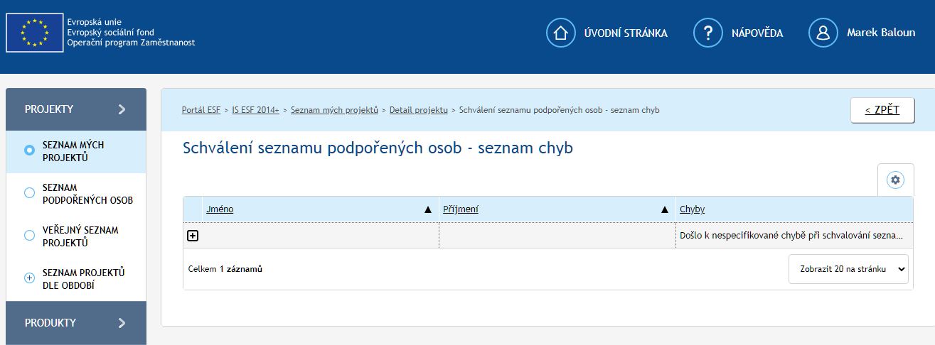po vyplnění seznamu PO a snaze o jeho schválení a hlavně přepsání hodnoty indikátoru z esfcr.cz do iskp14+ se u seznamu podpořených osob v aplikaci esdcr ukazuje hláška o nespecifikové chybě. Poradíte o co se jedná a jakým způsobem chybu odstranit a propsat hodnoty indikátoru do iskp14+ a promítnout je do aktuální ZoR ?