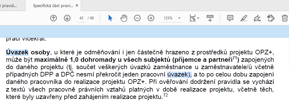 Ráda bych se ještě ujistila, jak je myšlena podmínky maximálního úvazku 1,0 (viz příloha- str. 43 Specifická část pravidel...). Kterých všech pracovních smluv se toto týká?