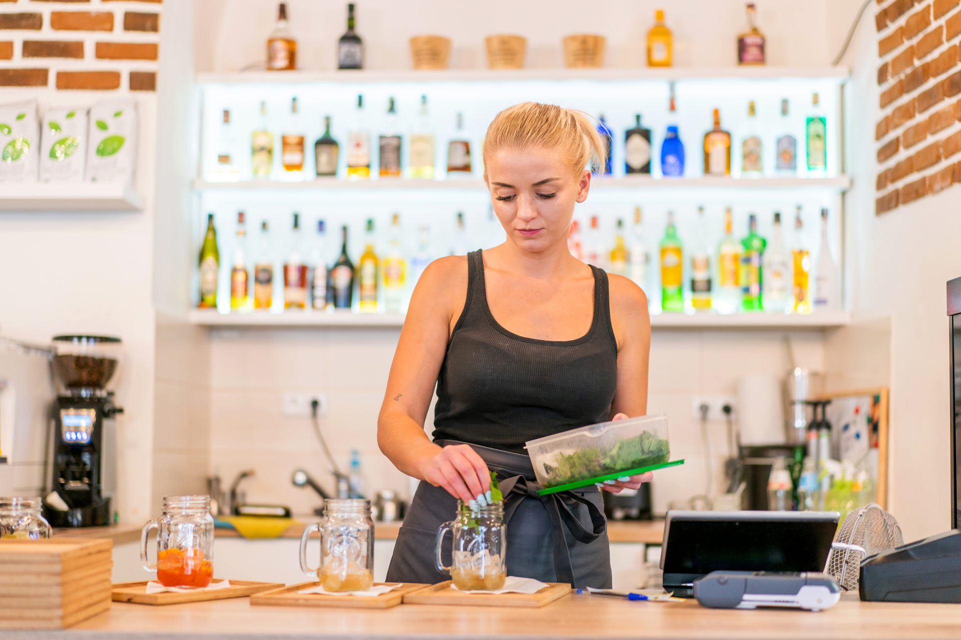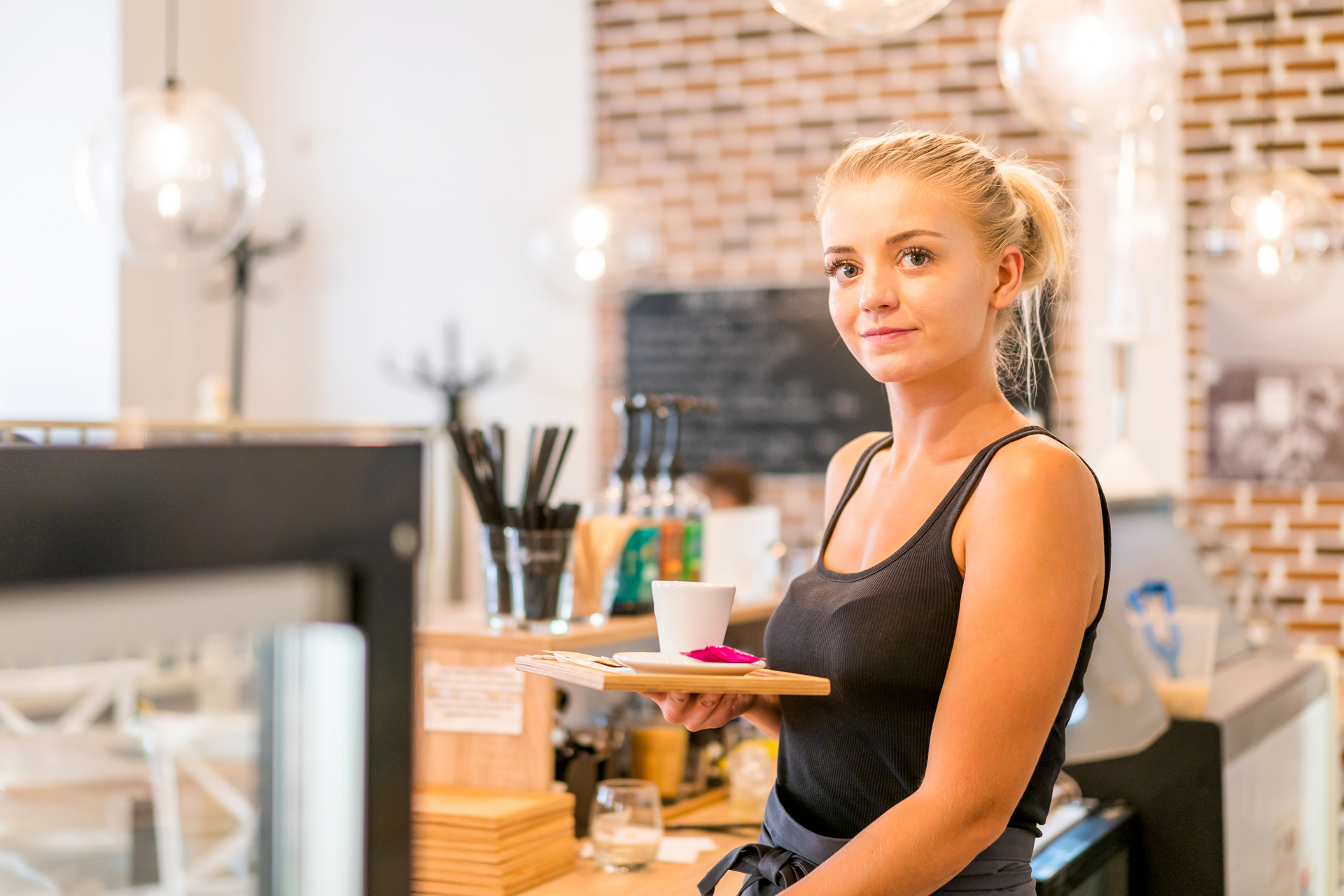 Denisa collects the dishes from the table and hurries to the counter to serve new customers. "It's not so bad now in the early afternoon. People go to restaurants mainly for lunch. It´s going to be busier later," explains Denisa, watching just a few occupied tables. The tiny blonde is working in a cosy café in the center of Kutná Hora as a waitress for over three months. Even though she is just in the middle of her twelve-hour shift, she seems to be very happy and full of energy. "I really appreciate this opportunity. I will gain a great experience; I have already learned a lot. In addition, I really enjoy it here, also thanks to the great team we have," she confesses.