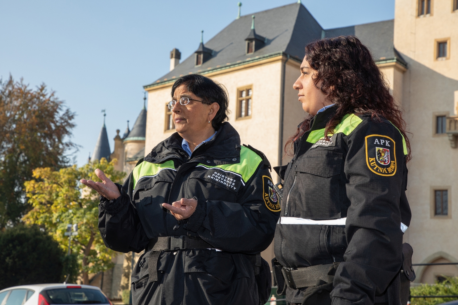 Petra chodí ve dvojici se Soňou, Věra s Lucií. Střídají se na ranních a odpoledních směnách, které začínají zhruba v sedm ráno a končí v deset večer. “Náročnější bývají pátky nebo odpolední směny, protože to lidé víc popíjejí,” říká Lucie. “Spoustu místních znám odmalička. Když dělají něco, co se nemá, tak jim řeknu, ať mi nedělají ostudu. Celkem to pomáhá,” dodává její parťačka Věra. Kromě dodržování zákazu pití alkoholu na veřejnosti kontrolují například parky a dětská hřiště, zda tam nejsou záškoláci, pořádek na ubytovnách nebo jestli lidé uklízejí po svých čtyřnohých miláčcích.