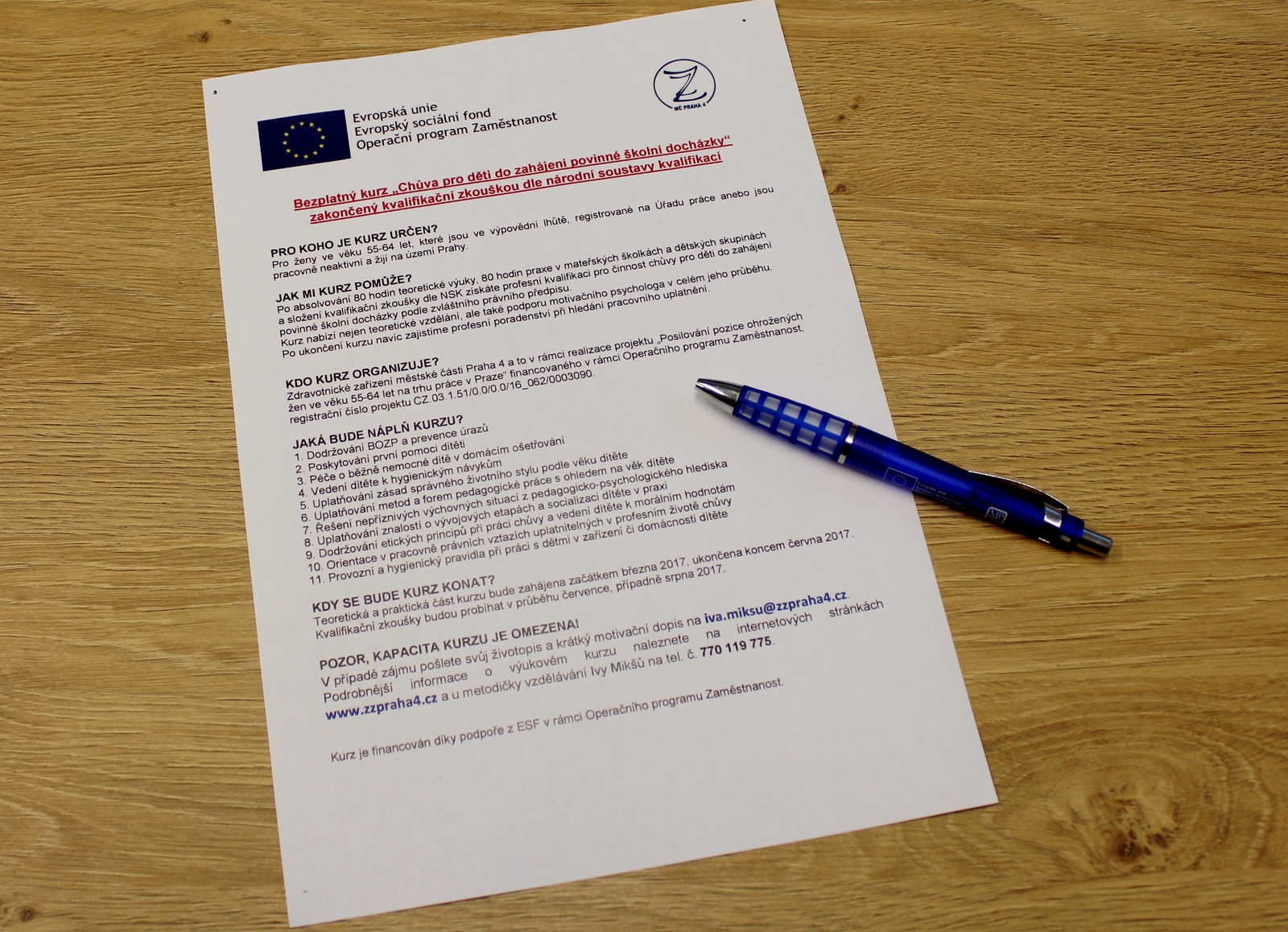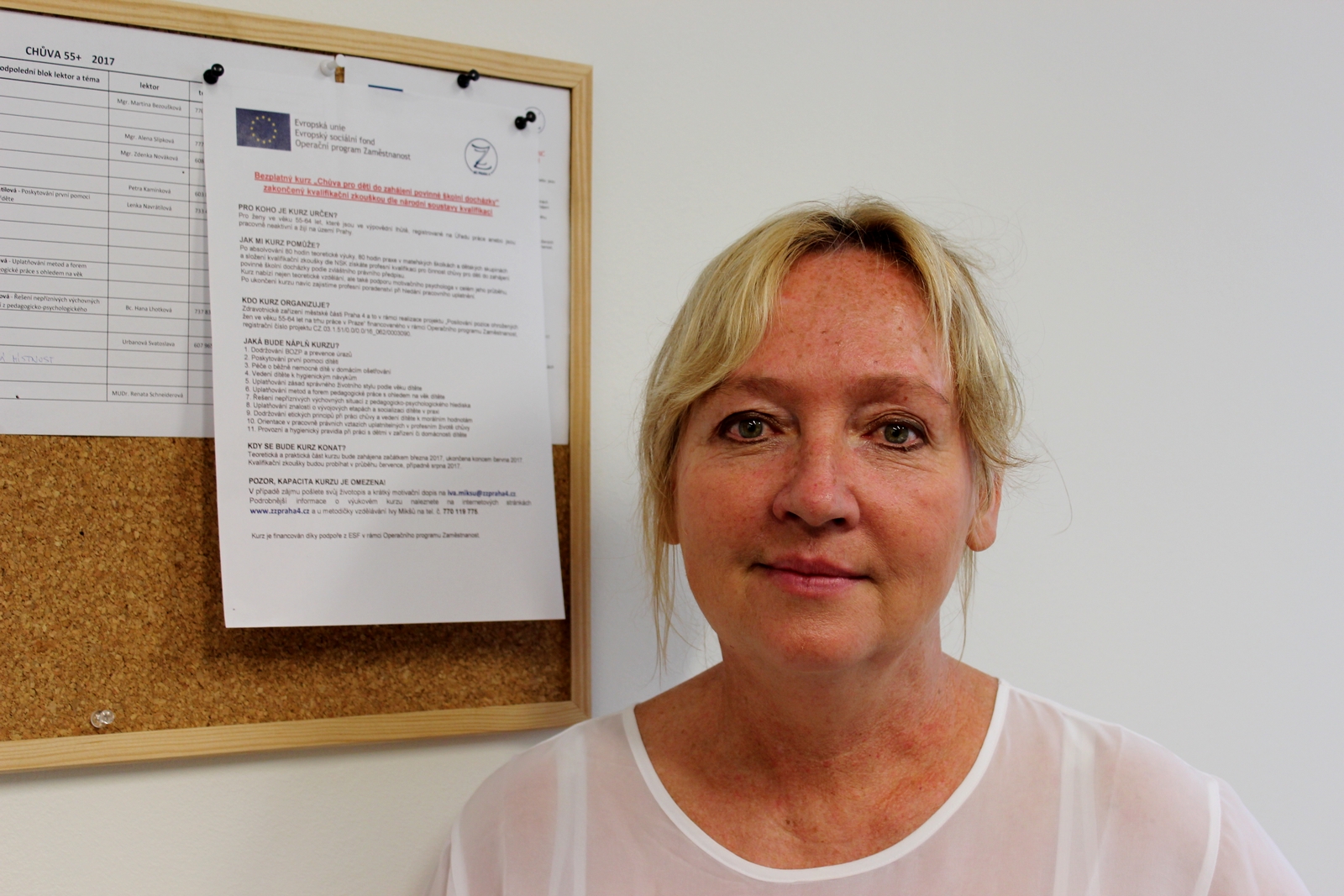 „Pak jsem v televizi uviděla reportáž o nějakém projektu, který zdarma nabízel rekvalifikaci na chůvu pro děti. To bylo přesně pro mě - v Itálii jsem se jako dobrovolnice věnovala malým dětem přes deset let. Neváhala jsem ani minutu!“ Zuzana se vypravila na Úřad práce, odkud ji nasměrovali na realizátora projektu, Zdravotnické zařízení Praha 4. To provozuje celkem 7 dětských skupin, které se transformovaly z bývalých jeslí, a zároveň díky dotaci z Operačního programu Zaměstnanost nabízí nezaměstnaným ženám ve věku 55 – 64 let možnost zdarma absolvovat rekvalifikační kurz na chůvu pro děti do zahájení povinné školní docházky, včetně závěrečné zkoušky z profesní kvalifikace.