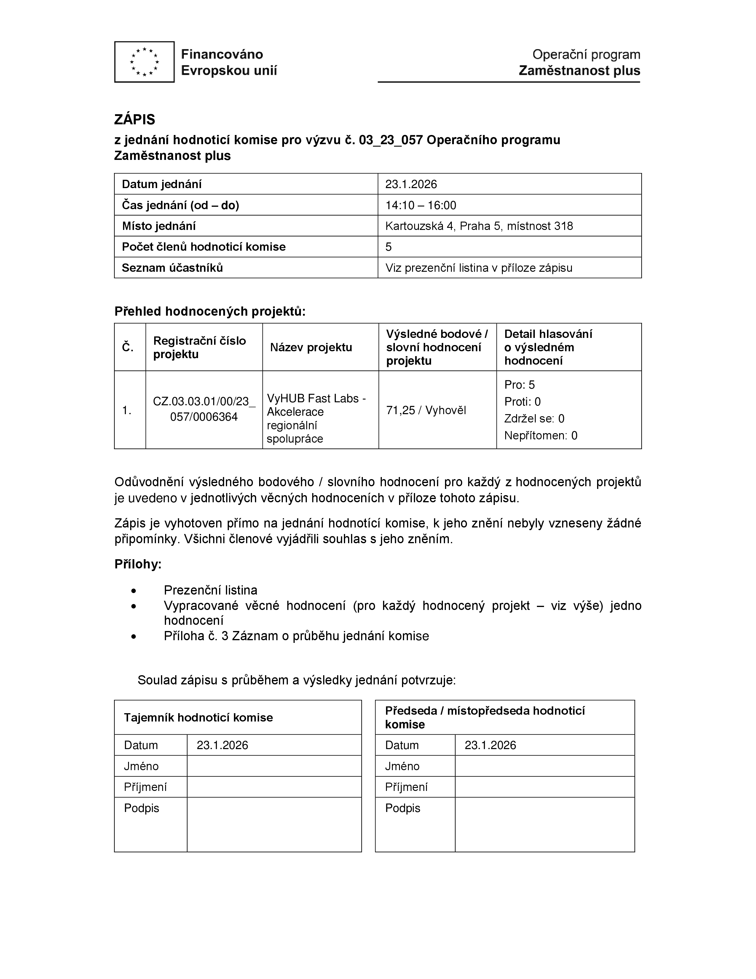 Zápisy z jednání hodnotících komisí