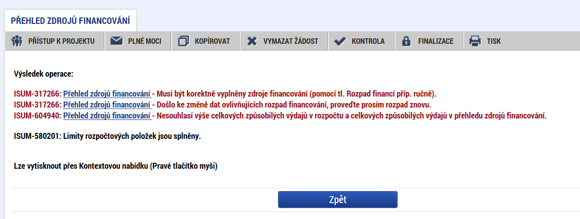 Vyplnila jsem novou žádost XhpLlP vše vpohodě až na rubriku financovní. Rozpočet jednotkový: to je v pořádku / Přehled rozpočtu: to je v pořádku / Přehled zdojů financování: zde nejde Rozpad financí.. neví co s tím, ani růčně to nejde doplnit / Finanční plán: zde je to v pořádku - při kontroje finančního plánu to píše ISUM-487652: Částky finančního plánu a rozpočtu jsou v souladu (obrázek v příloze). Však když se vrátím na Přehled zdrojů financování a zadám Rozpad financí tak to nfunguje (obrázek v příloze). Prosím o radu jak postupovat. Lenka Vanclová